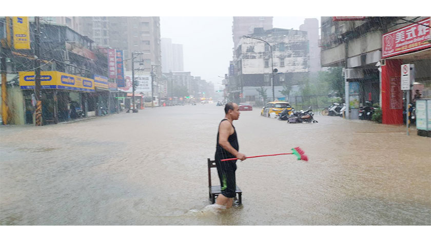 6月4日下午,台灣台北市下起大雨,到處淹水。受到颱風“彩雲”外圍環流影響,台北市文山區、信義區及新北市新店區多處淹水,大安區更出現大淹水,路旁停放的車輛,有一半都泡在水裡,行人寸步難行。(香港中通社)