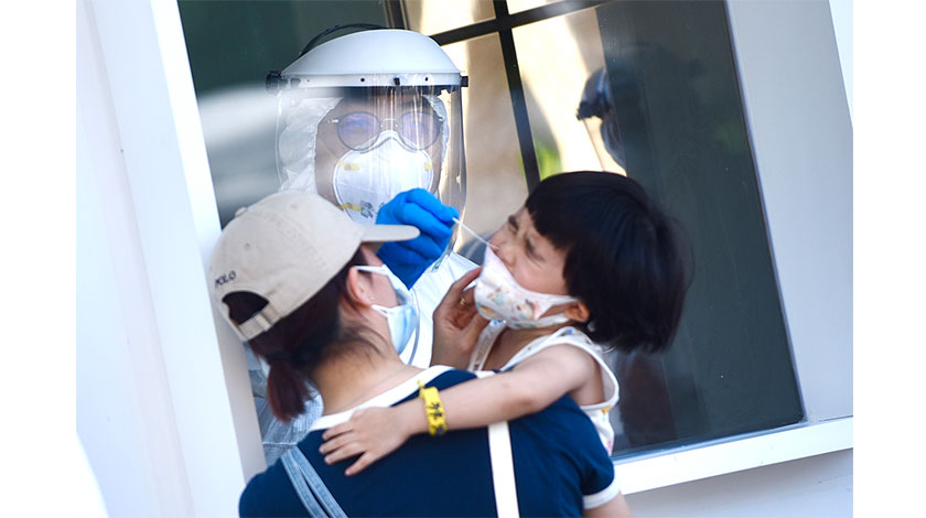 6月4日,台灣雙北市民眾到篩檢站進行篩檢。台灣新冠疫情未見放緩,雙北市擴大篩檢,增設多處篩檢站。市民害怕染疫,一家大小一窩蜂的去快篩,以確保自己及家人沒染疫。(香港中通社)