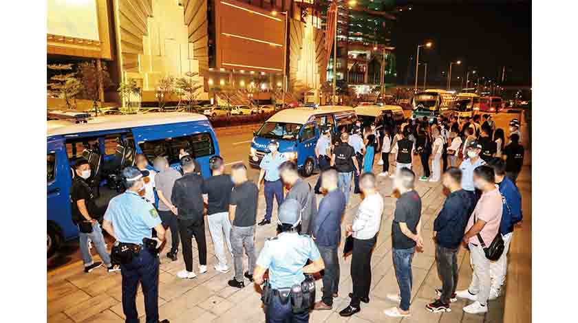 【特訊】在警察總局統籌下,治安警察局於前日正式開展「雷霆行動2021」,維護本澳社區良好治安環境。治安警察局澳門警務廳、海島警務廳、情報廳及交通廳聯同警犬組合共派出78名人員,分別在澳門及離島各區巡查酒吧、卡拉OK、按摩場所、遊戲機室,以及不定點進行查車行動。另外,亦針對路氹城金光大道一帶進行的非法兌換及“扒仔”活動,加強截查可疑人士,以預防及打擊各種不法行為犯罪活動。