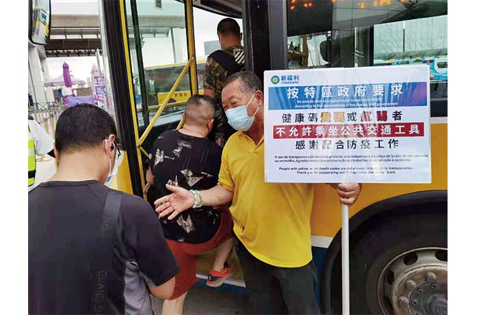 【特訊】因應新型冠狀病毒疫情變化,按特區政府要求,為保障乘搭公共交通工具乘客之健康,健康碼黃碼或紅碼者不允許乘坐公共交通工具,包括巴士、的士及輕軌。巴士和的士司機有權查閱乘客健康碼,並可拒絕接載黃碼或紅碼乘客。所有搭乘公共交通工具人士仍須全程佩戴口罩,否則車長及車務人員有權拒絕乘客使用相關服務。新福利加派人手到各個站頭執行新措施,站長檢查排隊候車乘客的健康碼,同時舉牌提示持黃、紅碼者不允許乘坐公共交通工具,新措施實施後,執行情況大致順暢,乘客自覺配合。
