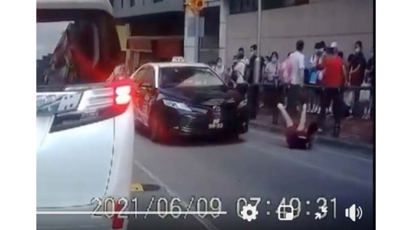 根據網上流傳的汽車錄影片段,學童沿斑馬線橫過馬路一半後,被肇事的士撞至整個人翻上車頭,雙腳朝天翻滾一圈墮地,幸學童仍能自行爬起走回路邊。肇事的士亦及時煞停,未有造成嚴重事故。