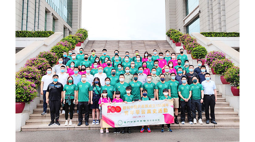 【特訊】為慶祝中國共產黨成立一百周年,澳門中華總商會青年委員會日前舉辦了「慶祝中國共產黨成立一百周年──青年學習黨史活動」,活動在中總青委會主任馬志達的帶領下,一行六十五人參觀位於中國人民解放軍駐澳門部隊氹仔軍營的中國人民解放軍歷史陳列館、駐澳門部隊軍史館,獲駐澳部隊政委孫文舉、政治工作部副主任易建軍親切接待。參觀後,前往龍環葡韻步行徑閒庭信步,感受中國共產黨創始人之一的毛澤東所寫的詩詞《水調歌頭‧游泳》裏的「不管風吹浪打,勝似閒庭信步。」隨後,假新濠影匯星匯餐廳進行聯歡餐敍。中聯辦協調部部長傅鐵生應邀全程參加。