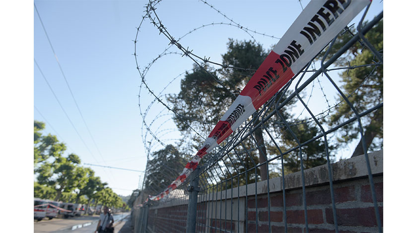 這是6月15日在瑞士日內瓦拍攝的拉格朗熱別墅週邊拉起的警戒鐵絲網。美國總統拜登與俄羅斯總統普京將於16日在瑞士日內瓦的拉格朗熱別墅舉行會晤。(新華社記者 郭晨 攝)