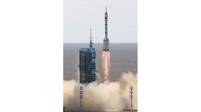 6月17日,搭載著神舟十二號載人飛船的長征二號F遙十二運載火箭在酒泉衛星發射中心點火升空。新華社記者 李剛 攝