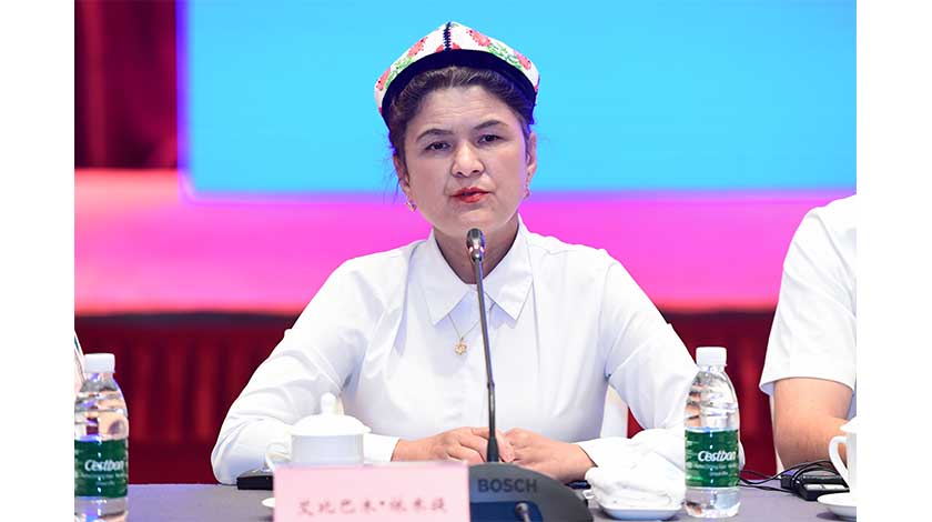8日,新疆維吾爾自治區人民政府就涉疆問題在北京舉辦新聞發佈會。日前,由美西方反華勢力和“世維會”等“東突”組織合謀成立的所謂“維吾爾特別法庭”,邀請一批反華分子和所謂的“專家學者”“出庭作證”,妄圖證明根本不存在的涉疆“種族滅絕”問題。發佈會上,多位“出庭證人”的家屬和相關醫療、教育、金融機構工作人員出面駁斥其謊言。圖為艾比巴木•依米提在發佈會上批駁其丈夫的謊言。中新社記者田雨昊攝