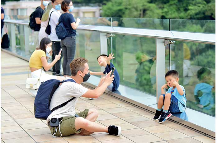 6月20日週日,正值一年一度的父親節,香港不少市民乘坐山頂纜車前往太平山遊玩,在空閒之餘享受和家人共同度過假期的歡樂和閒暇。(香港中通社記者 許其皓攝) (香港中通社圖片)