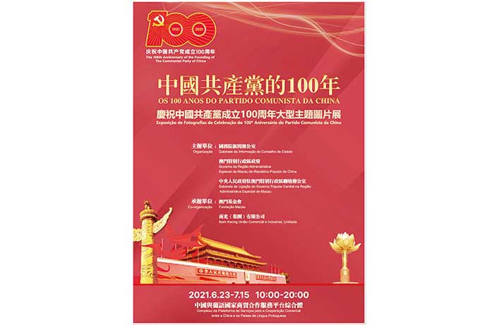 【特訊】由國務院新聞辦公室、澳門特別行政區政府、中央人民政府駐澳門特別行政區聯絡辦公室主辦,澳門基金會、南光(集團)有限公司承辦的“中國共產黨的100年——慶祝中國共產黨成立100周年大型主題圖片展”,將於6月23日上午在中國與葡語國家商貿合作服務平台綜合體開展,屆時邀請中央駐澳機構、特區政府相關部門、澳門社會各界代表出席開展儀式。