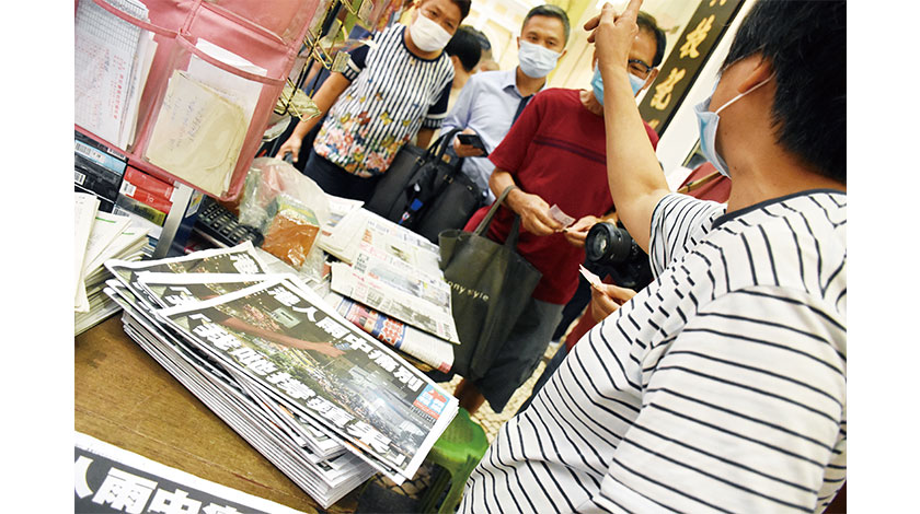 特寫「最後一份《蘋果日報》」昨午抵澳。傍晚六時左右,很多市民已在報攤排隊等候;多區出現排隊購報人龍,由於數量有限,不少市民未能購得,失望而回。有評論表示,排隊購買報紙,在澳門非常罕見;此情此景,或許可以顯露市民內心信服的是甚麼傳媒。