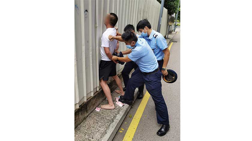 警員據報透過天眼鎖蔣的身份資料,約十分鐘後,天眼發現一名與疑犯相似的赤腳男子在羅理基大馬路出現。附近警員據報立即到場截查,疑犯見警員企圖登一輛的士逃走,但為的士司機拒絕他上車,疑犯遂拔足逃跑,警員追至山邊街將疑犯拘捕。