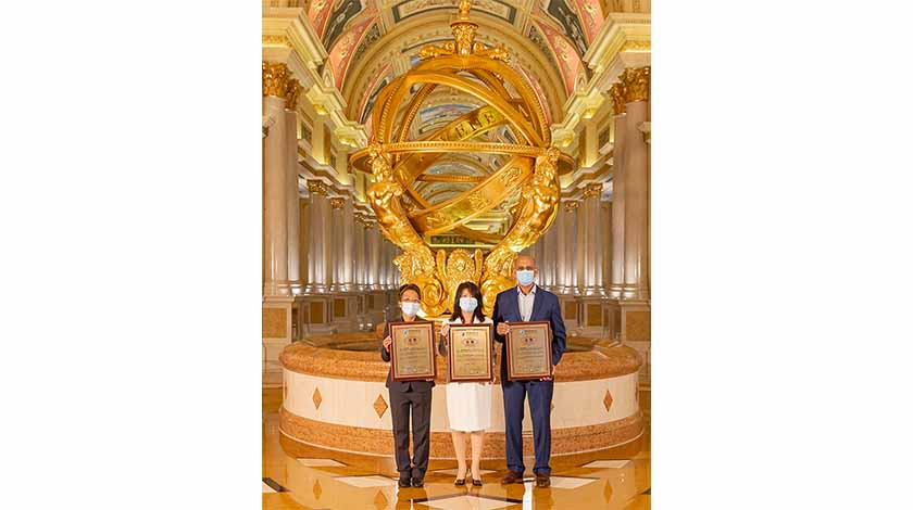 【特訊】金沙中國旗下三家酒店:澳門威尼斯人、澳門巴黎人及澳門四季酒店於新一屆的「澳門環保酒店獎」中榮獲金獎。「澳門環保酒店獎」頒獎典禮於周二在澳門特別行政區政府環境保護局演講廳舉行,金沙中國及旗下三家酒店代表均有出席。