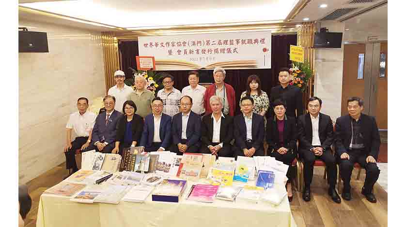 【特訊】世界華文作家協會(澳門)於7月9日假馮記鮑翅海鮮火鍋酒家舉行第二屆理監事就職典禮暨會員新書發行捐增儀式。中聯辦宣文部處長辛建波,協調部處長劉冠宇,澳門基金會行政委員會主席代表黃棣樂,市政署市政諮詢委員會主席司徒民義,立法議員陳虹、鄭安庭、宋碧琪,智慧人文勵政會會長吳在權,江門商會會長劉朝盛,世界華文作家協會(澳門)主席陳溥森等主禮嘉賓出席了盛會。