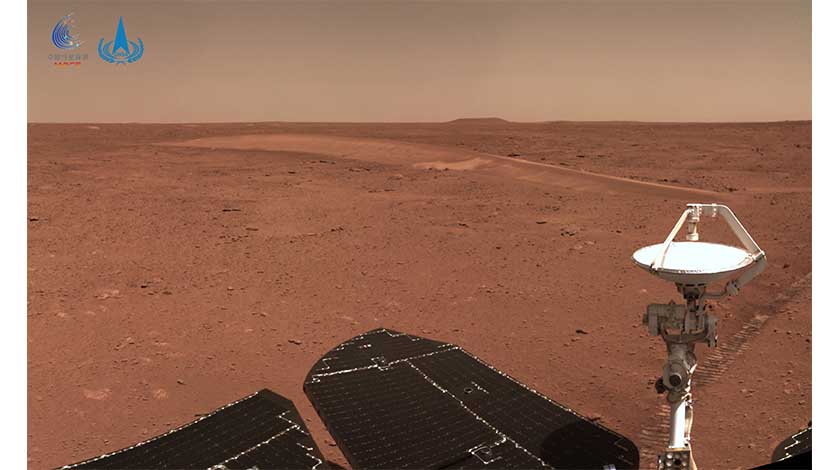 9日,中國國家航天局探月與航天工程中心公開了5張“祝融號”火星車行進路上的沿途地貌圖像。圖中可見沙丘全貌,長約40米,寬約8米,高約0.6米。中新社發中國國家航天局供圖
