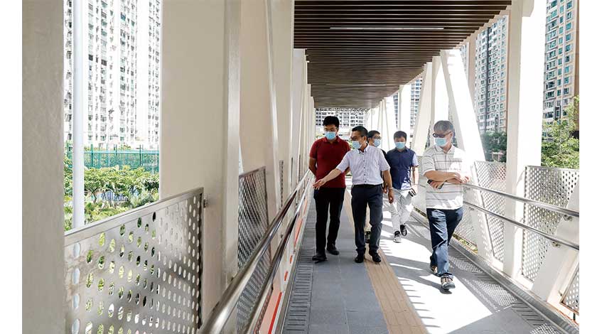 同時,就有意見提出設施欄河出現生鏽情況,由於使用材料為不鏽鋼,經了解實為污跡。由於設施才剛開放,局方已要求承建商連同施工階段殘餘的污跡一併清理完善。另外,經工程專業技術人員及承建商檢查後,沒發現有意見所指駁位出現裂痕的情況,“空中走廊”不存在結構安全問題。