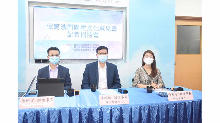 群力智庫中心副理事長梁鴻細與張淑玲,聯同街總副理事長李仲言昨發表保育澳門圍里文化意見書。當中提出五方面保育圍里的建議,包括進行系統性的專門研究;加強宣傳推廣教育;加快對圍里建築的保育和修復;善用活化建築,增加本地旅遊資源;引入新科技,以創新意念活化澳門圍里場所。