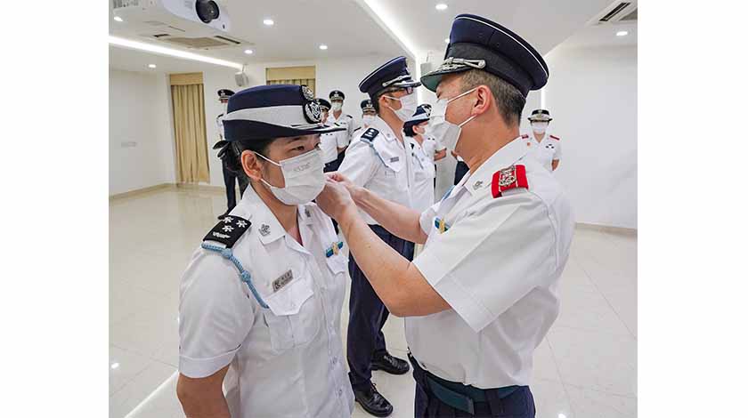 獲晉升的三人在宣誓後,由海關關長為其等戴上新肩章,正式晉升成為關務監督。關長致辭時對三人過往的工作表現予以肯定,期望三人在日後的工作崗位上帶領下屬團隊,不畏困難、攜手共進,以盡責、認真的專業精神,服務市民。