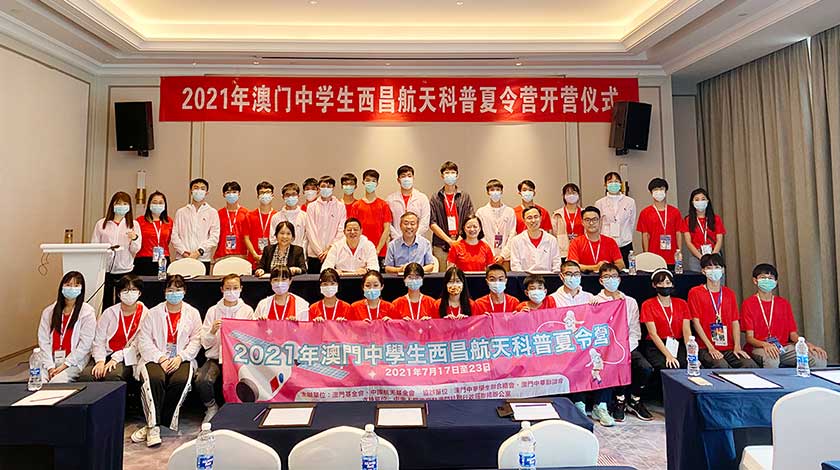 澳門基金會行政委員會副主席鍾怡致辭表示這一代同學們是見證著本澳回歸後一國兩製成功實踐的孩子,本澳經濟、文化、旅遊蓬勃發展,充分展現出國家對澳門的支持,冀望同學們懂國情知澳門,傳承愛國愛澳的精神,學有所長、積極進步,建設澳門、熱愛祖國。澳門學聯理事長兼團長楊煒軒致辭表示感謝各單位給予本澳青少年學習祖國偉大航天發展的機會,作為新一代的青年學生,大家都為祖國的航天事業感到非常自豪和驕傲。