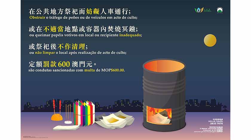 市政署昨舉行每月例會,介紹近期工作。配合農曆七月盂蘭節將至,市民有燒街衣的習俗,市政署將於黑沙環、祐漢、台山、筷子基、青洲、林茂塘、氹仔及路環市區的公共街道設置約二百八十個具“IAM”字樣的燒衣桶(具體地點可於市政署環境資訊網www.iam.gov.mo/macaohygiene查閱),方便市民進行祭祀,並提醒市民燒街衣時必須使用化寶盆或燒衣桶,避免於行人路中心、大廈出入口、車輛停泊處焚燒冥鏹等紙祭品;盂蘭節期間,市政署除了協調外判清潔公司加派人手保持公共地方清潔衛生外,亦會加派稽查人員進行巡查及對市民作出勸喻,根據《公共地方總規章》,因祭祀而妨礙車輛或行人通行,或在祭祀後不清理有關地方,又或於不適當地點或容器內焚燒冥鏹等,可被檢控罰款六百元。去年,則有四宗檢控,以及七十五宗勸籲。