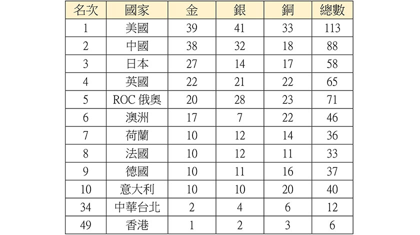 東京奧運閉幕 最後一日獎牌榜美國反超中國