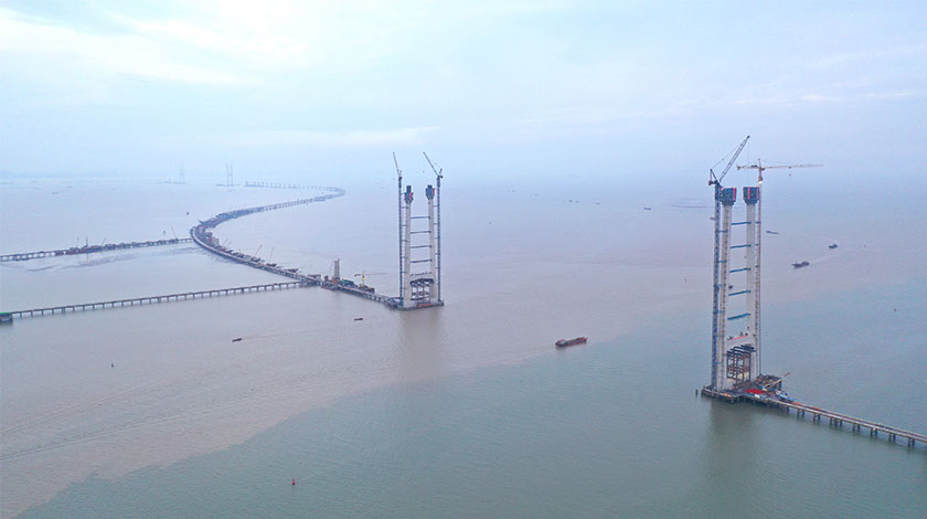 粵港澳大灣區核心工程深中通道中山大橋西主塔完成封頂