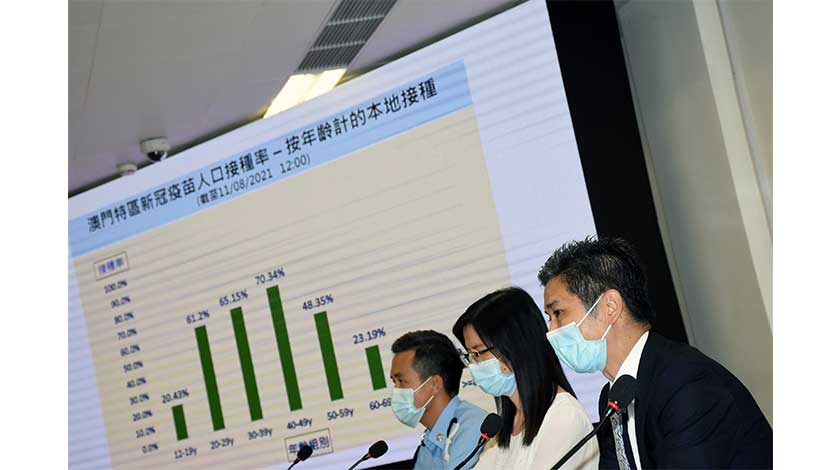中心昨公布接種率數據:截至昨日下午二時,本澳疫苗接種率為百分之四十三點五,目標人群(即十二歲以上)的接種率為百分之四十九。至下午四時,全澳累計已接種人數廿九萬七千九百四十八人。