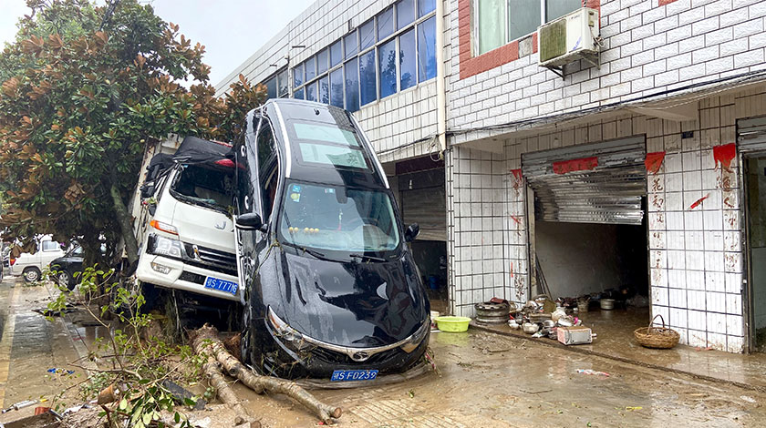 8月13日,柳林鎮街道被洪水掀翻的車輛。11日至12日,湖北隨縣柳林鎮發生極端強降雨天氣。據初步排查,此輪強降雨造成柳林鎮8000餘人受災,21人死亡、4人失聯。(中新社)