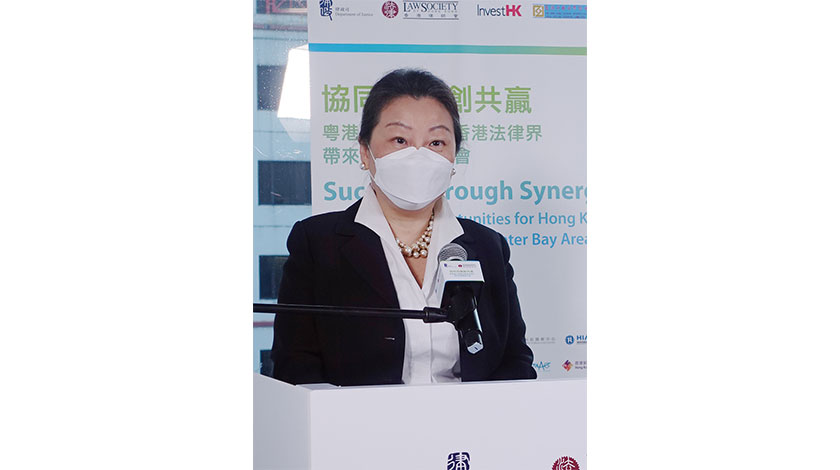 她說,香港法律執業者,在通過考試取得相關執業證書後,可在大灣區內地9市辦理適用內地法律的部分民商事法律事務,受聘於大灣區內地9市的內地律師事務所或是港澳與內地合夥聯營律師事務所,並可以成為大灣區內地9市的內地律師事務所合夥人。希望香港法律業界珍惜這些機會,珍惜香港法律業界在專業及執業的自我監管機制,珍惜香港律師會可以與不同的部委會面,為會員爭取發展業務的機會。