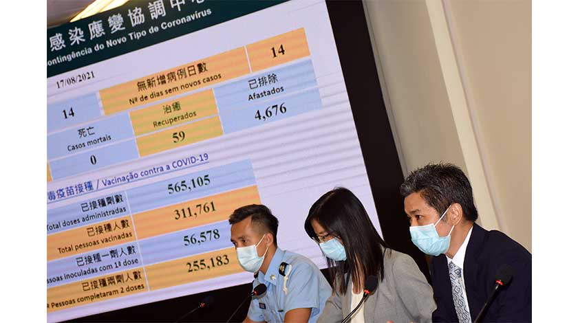 截至昨日下午四時,本澳累計已接種新冠疫苗劑數為五十六萬五千一百零五劑,已接種人數共有三十一萬一千七百六十一人;其中,僅接種第一劑有五萬六千五百七十八人,已接種第二劑有二十五萬五千一百八十三人。接種滅活(國藥)的約佔八成半,接種mRNA(BioNTech)的約佔一成半。