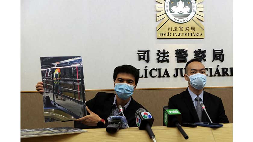 司警局和勞工局昨日聯合舉行記者會公布調查結果。司警發言人盧振輝稱,事件中劉姓外地僱員來澳工作四年,於上述地盤工作兩年,負責地盤地面層鋪電線工作,墮下時身上穿有安全衣和安全帶,現場工友事前未發現他有異樣。據相關工程公司了解,現場天花走廊離地二十八米,作為日後的維修走道,走道兩側設有一點二米高的欄河,相關工程項目早前已完工及拆走棚架。工程公司當日沒有指派劉到上址位置工作。