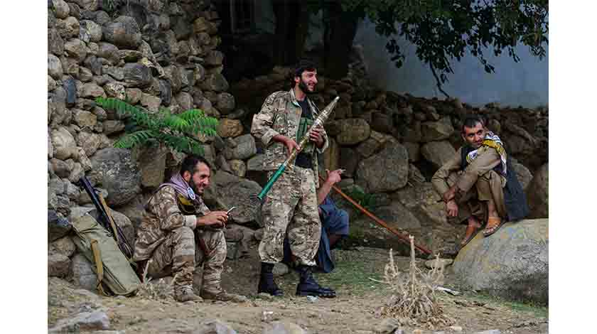 8月18日,武裝人員聚集在阿富汗潘傑希爾省巴扎拉克街邊。新華社/法新