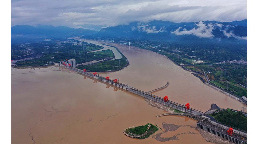 『長江2021年第1號洪水』在長江上游形成,圖為『長江2021年第1號洪水』通過三峽水庫。中新社