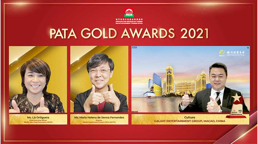 PATA 之金獎評選旨在表揚旅遊領域各項創新優秀的舉措。昨日中午,PATA 金獎頒獎禮以線上形式舉行,銀娛公共關係高級副總裁林志成代表銀娛接受由 PATA 首席執行官麗茲・奧蒂葛拉及澳門特別行政區政府(下稱「澳門特區政府」)旅遊局局長文綺華頒發獎項。