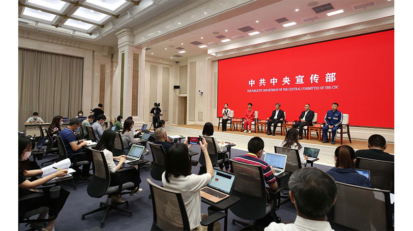 9月8日,中共中央宣傳部在北京舉行中外記者見面會,請能源領域黨員代表圍繞『踐行初心使命,貢獻能源力量』與中外記者見面交流。中新社