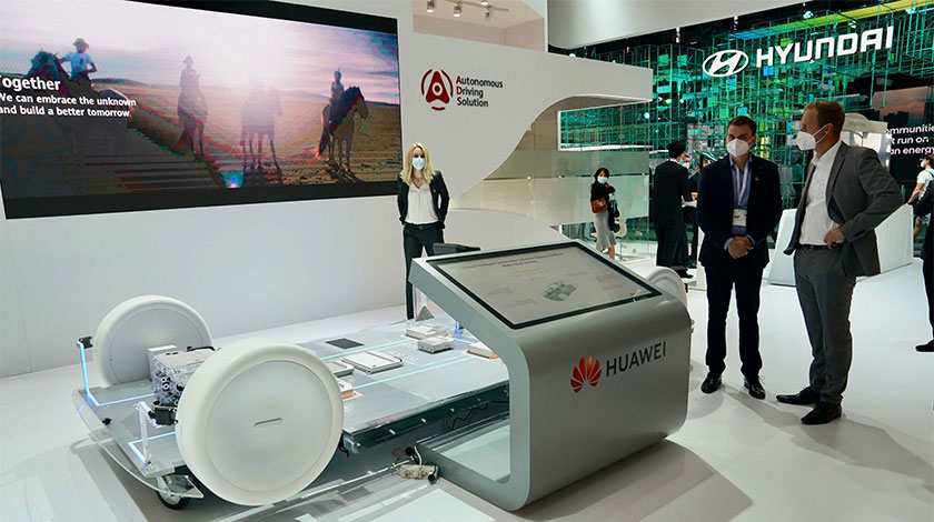 當地時間9月7日,新冠疫情暴發以來歐洲首場大型國際車展慕尼黑車展(IAAMobility)正式開幕。華為首次作為智能汽車部件供應商,攜創新的智能汽車解決方案和零部件亮相該展。圖為華為展區亮相慕尼黑車展。中新社