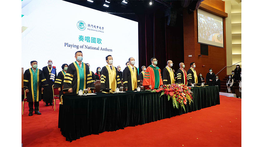 王偉光教授、中聯辦副主任鄭新聰、中國外交部駐澳特派員公署特派員劉顯法、城大基金會信託委員會主席劉藝良、校董會主席陳明金、副主席顏澤賢、校長劉駿等擔任主禮嘉賓,城大校董會成員、基金會成員、社會賢達及師生、員工等出席典禮。