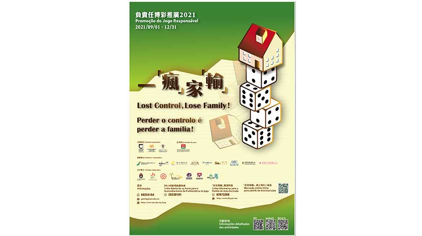 【特訊】由社會工作局、博彩監察協調局及澳門大學博彩研究所合辦的“負責任博彩推廣”今日啟動。今年繼續以“一「瘋」家「輸」”(Lost Control Lose Family) 作為推廣主題,旨在提高市民對賭博失調的認知及提升家庭教育的重要性,並在9月至12月期間與相關社服機構及博彩業界舉辦系列宣傳活動,內容包括社區宣傳推廣及活動、RG網絡互動遊戲及閉幕禮等。