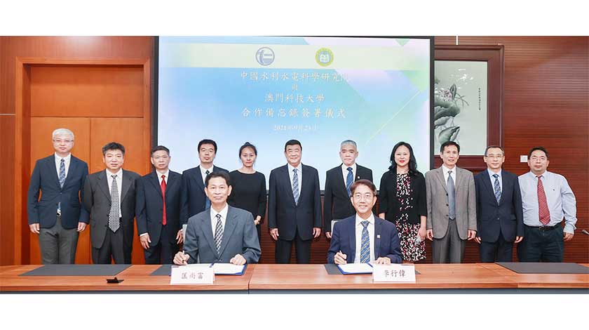 會後,澳門科技大學李行偉校長與中國水利水電科學研究院匡尚富院長共同簽署合作備忘錄,基於平等互惠的原則,為開展學術交流,促進雙方在科研、教學、專案、成果推廣等方面的合作。