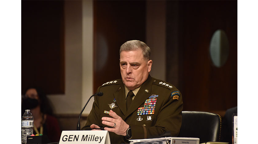 當地時間9月28日,美國國防部長奧斯汀、美軍參謀長聯席會議主席米利、美國中央司令部司令麥肯齊出席國會參議院軍事委員會聽證會,就從阿富汗撤軍、阿未來局勢等問題回答議員提問。圖為米利在聽證會上發言。中新社