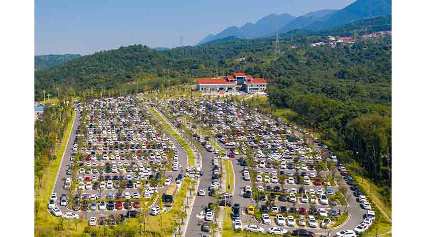 10月4日,江西省廬山風景名勝區廬山索道停車場迎來了高度飽和狀態。中新社