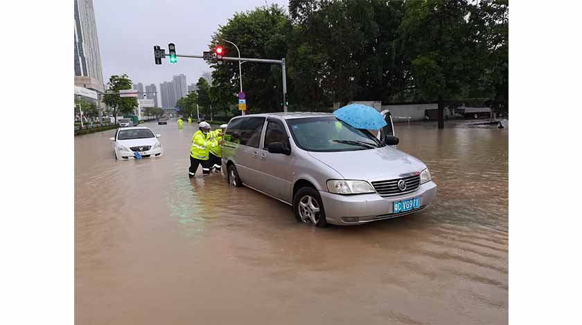 10月10日,受台風“獅子山”影響,廣東珠海普降大暴雨,珠海市氣象局于當天7時45分發佈了暴雨紅色預警信號。強降雨致使珠海多條道路水浸嚴重無法通行,交警部門採取了臨時封閉交通管制。中新社