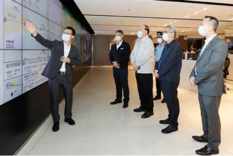 行政長官到達民防中心後,首先巡視控制中心,聽取保安司司長、民防中心聯合行動指揮官黃少澤,警察總局局長、輔助聯合行動指揮官梁文昌,海關關長黃文忠及治安警察局局長吳錦華等匯報應對颱風“圓規”的工作部署和對本澳的影響。隨後與民防架構21個部門領導舉行工作會議。
