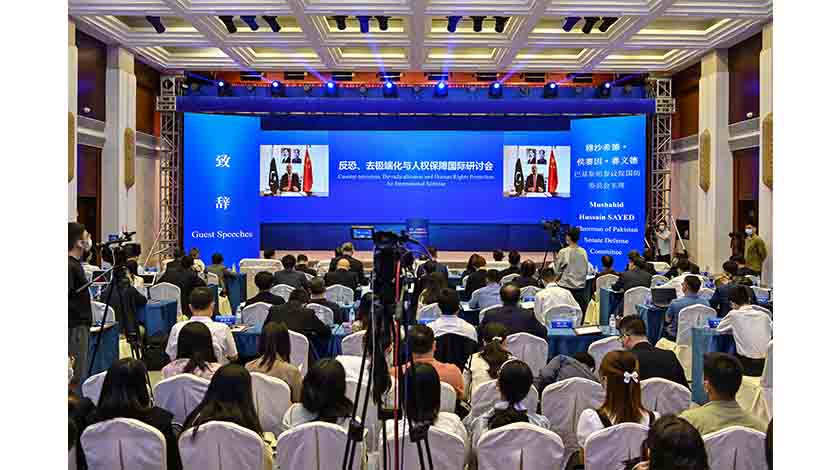 10月13日,由中國人權研究會、廣東省人民政府新聞辦公室共同主辦的第四屆“反恐、去極端化與人權保障”國際研討會在廣東省廣州市開幕。圖為巴基斯坦參議院國防委員會主席穆沙希德•侯賽因•賽義德在開幕式上致辭。中新社
