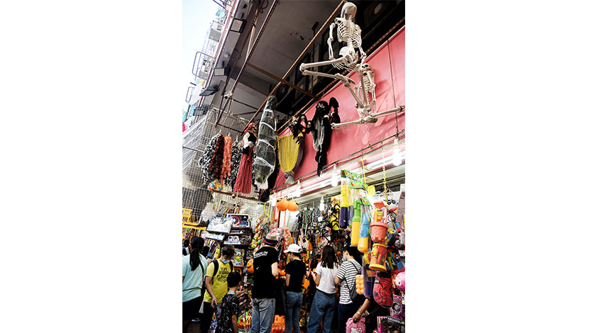 萬聖節即將到來,近期香港福榮街不少玩具店鋪貨架上萬聖節相關商品琳瑯滿目,10月17日,正值週日,不少市民前往福榮街挑選萬聖節商品,為過節提早做準備。(香港中通社)