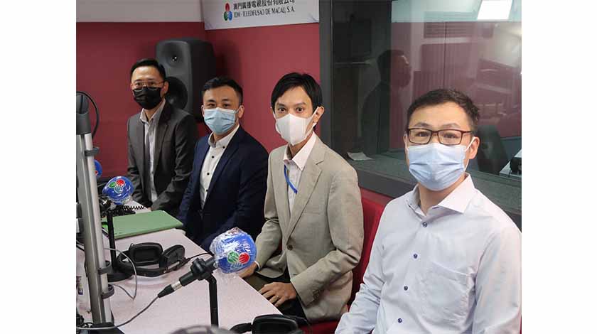 澳門電台時事節目「澳門講場」,昨應邀教育及青年發展局非高等教育廳廳長黃嘉祺、高等教育廳廳長許嘉路、課程發展及評核處處長鄭錫杰及菜農學校副校長江欽育出席,與市民探討在家學習的情況。