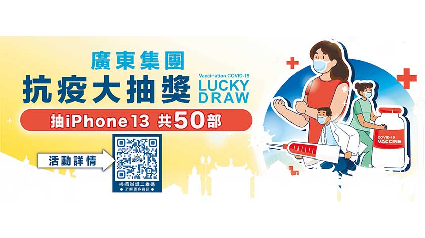 據廣東集團負責人表示,集團一直積極推動社會各界齊心抗疫,繼早前推出疫苗接種有薪假期給員工後,現更推出抗疫大抽獎活動予全澳居民,以實際行動響應澳門特區政府的呼籲,並鼓勵社會大眾及早接種新冠疫苗,同心協力守護澳門,堅守來之不易的防疫成果。