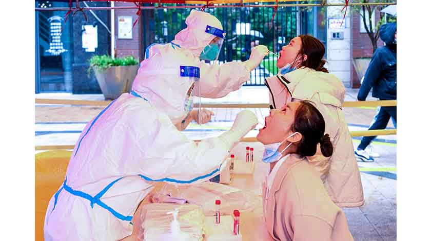 10月20日,醫務人員在長沙縣一核酸檢測點為市民進行核酸採樣。當日,湖南長沙縣開始對全縣所有人員(含常住人口、流動人口)開展全員核酸檢測工作。 中新社