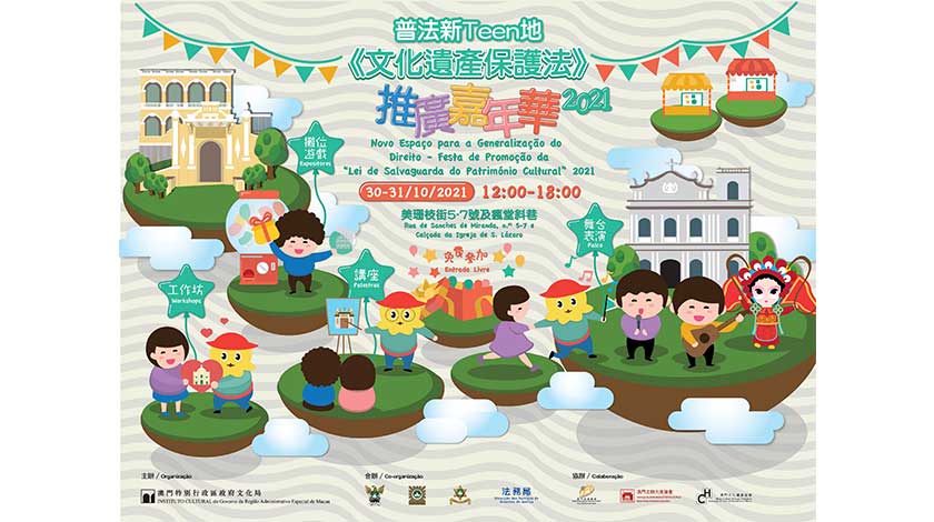 【特訊】為響應由多個政府部門聯合舉辦的“2021普法新TEEN地”青少年法律推廣月活動,以及廣泛地向公眾普及澳門文化遺產知識與《文化遺產保護法》,文化局將於10月30日及10月31日中午12時至下午6時在瘋堂斜巷及美珊枝街5-7號戶外空間舉辦“《文化遺產保護法》推廣嘉年華2021”,現場設有舞台表演、攤位遊戲及工作坊等,活動免費入場,文化局將嚴格按照衛生部門相關防疫指引,對活動作出妥善安排,歡迎市民到場參與。