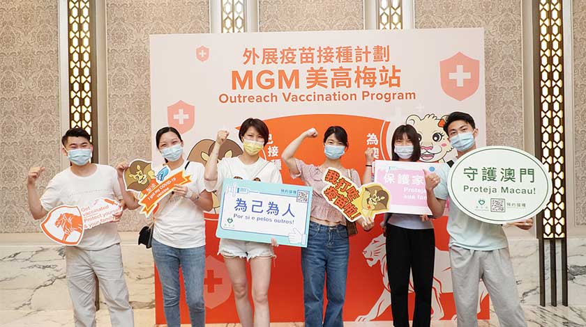 美高梅年內推出多項便利措施和宣傳,務求讓團隊成員透徹了解新冠疫苗資訊,鼓勵團隊接種疫苗。今年5月,美高梅成為首家邀請澳門衛生局醫護人員駐場舉辦「外展疫苗接種計劃」的綜合度假村企業,並特意請來衛生局代表向團隊成員講解疫苗須知。公司並先後為團隊成員及其家人舉辦共四次專場,提供方便貼心的疫苗接種服務,獲團隊成員踴躍參與,總共逾八千人次參與外展接種。與此同時,公司管理層成員亦以身作則,率先接種疫苗,更身體力行在公司內外宣傳講解,鼓勵更多團隊成員接種。
