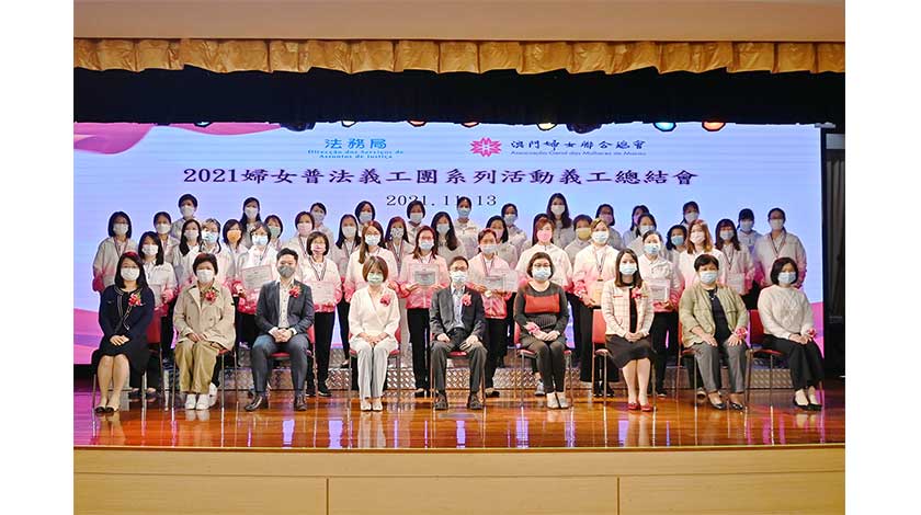 【特訊】由法務局與婦聯總會合辦的“二○二一婦女普法義工團系列活動”圓滿完成,今年共吸引逾六十位婦女參與逾八個月的培訓課程。活動日前在婦聯綜合服務大樓五樓何賢禮堂舉行義工總結會,向四十六位結業學員進行頒獎嘉許,其中八位為優異學員,另設有優秀組長和積極參與獎項,以資鼓勵。活動同場讓完成課程的學員進行總結及分享環節。