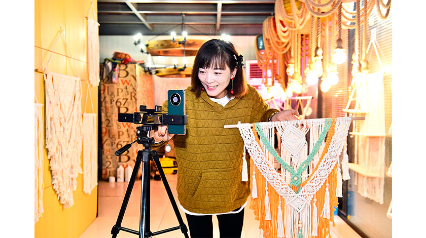 在惠民縣李莊鎮一家繩網企業,女主播在直播銷售繩網製品。作為我國重要的繩網生產基地,山東省惠民縣利用電子商務、大資料和物聯網等技術,推動『互聯網+繩網產業』『雙網融合』發展,形成了集原材料供應、研發設計、成品加工、市場銷售、應用服務等於一體的集群體系。新華社