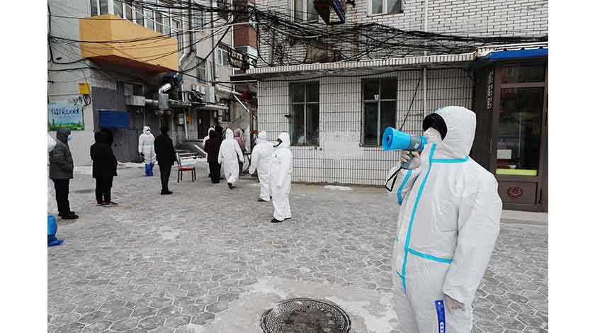 11月29日,滿洲里市,工作人員引導民眾核酸檢測。根據滿洲里市疫情防控指揮部工作安排,從29日上午8點開始,對滿洲里市所有居民開展第二輪大規模核酸檢測。中新社